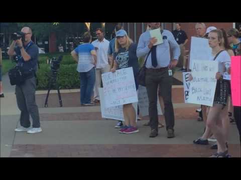 He began by thanking the chief of police and the mayor of Lee's Summit for being so helpful. Police had blocked off the street, and were keeping a lookout from rooftops to keep the peace.